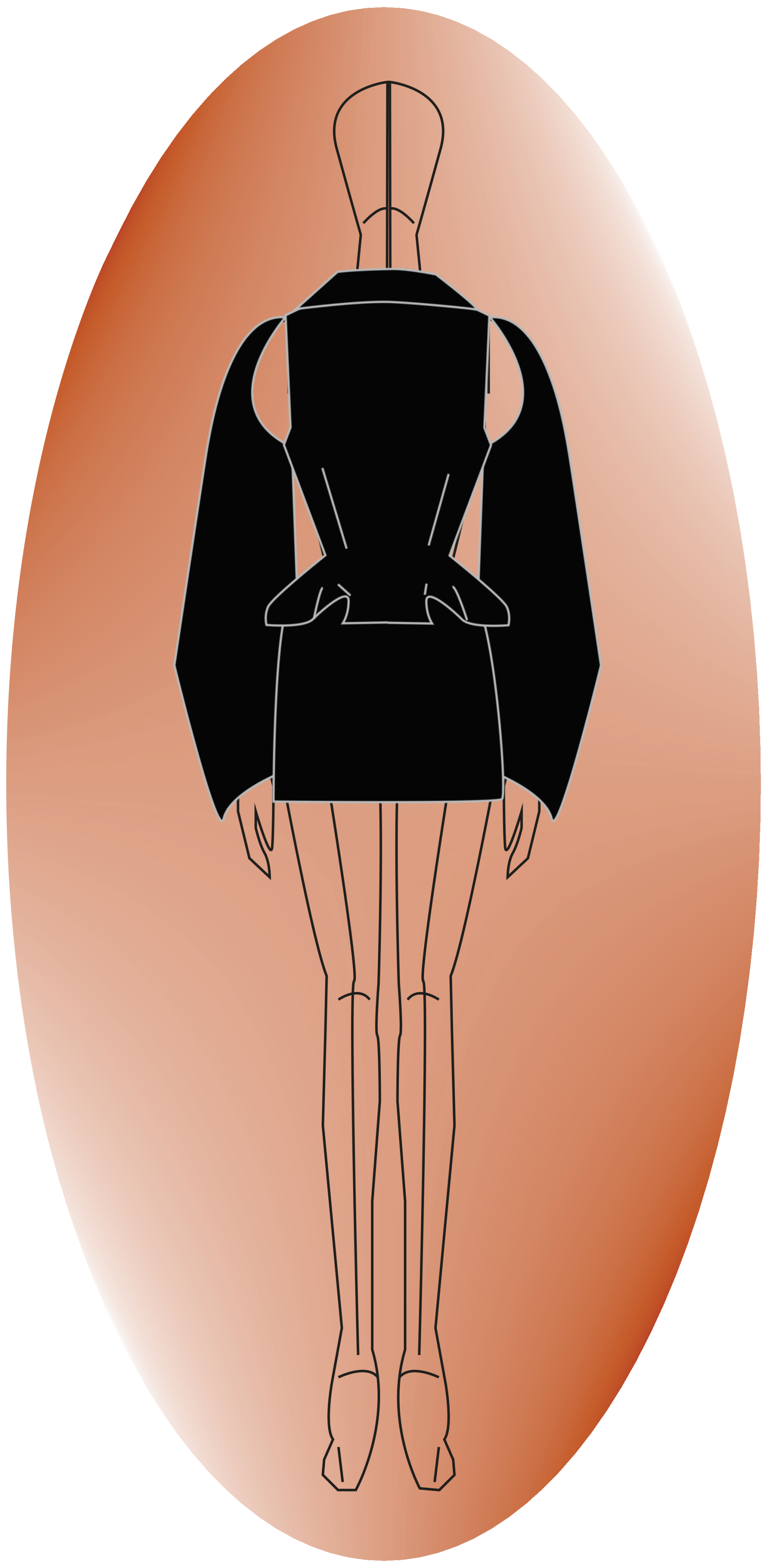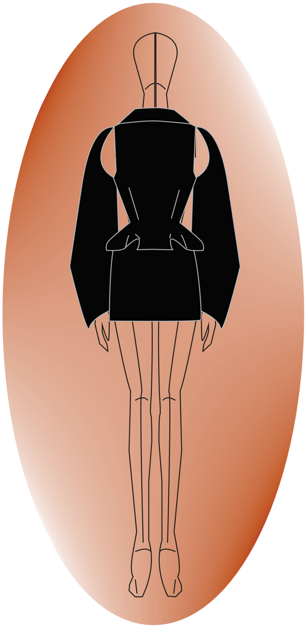 Composé de deux pièces, une veste et une jupe qui mettent en valeur le corps grâce à leur architecture.